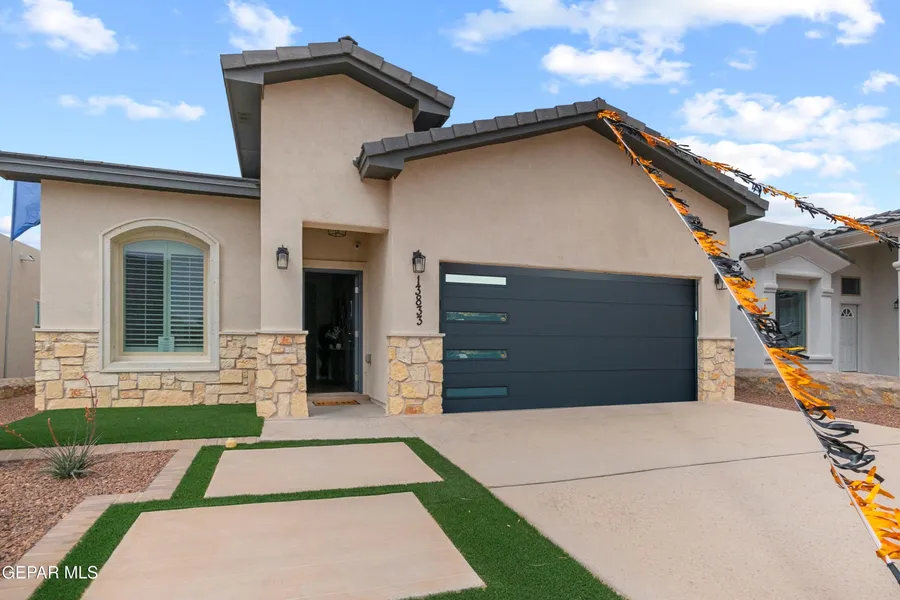 Introducing the Saffron-a floor plan as rich and vibrant as the spice it's named for. This new construction home is defined by luxurious finishes and unparalleled attention to detail, featuring exquisite quartz countertops, elegant Cantera Stone accents, and an abundance of natural light from expansive windows. Located in the desirable Paseos Del Este subdivision of El Paso, it offers convenient proximity to highly rated schools, shopping and restaurants and is nestled within a growing, thriving community. Experience a refined blend of modern design and timeless charm that creates an inviting sanctuary where sophistication meets everyday comfort. Embrace the allure of Saffron, where every detail is crafted for elevated living.