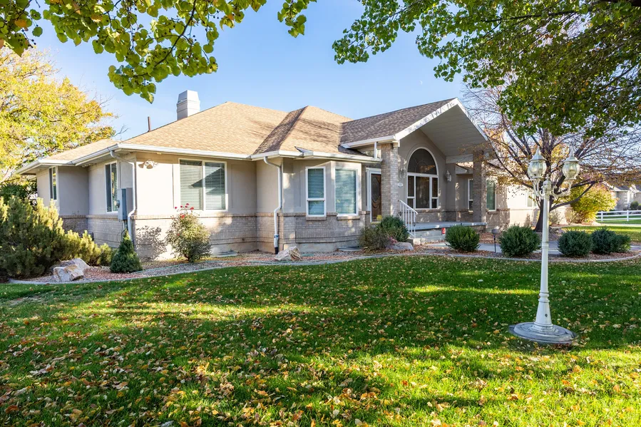 Discover this exceptional home on a full usable acre in the sought-after Wasatch View Drive! The property features a game-changing detached building (54'W x 41'D) with additional loft storage, perfect for RV/boat storage or a home-based business. The building includes four oversized doors (up to 10'W x 14'H), a climate-controlled workshop with a half bath, an RV electrical hookup, and a new 50-year roof installed in 2023. An additional 30'W x 21'D covered awning provides even more protected storage space. The home offers incredible multi-generational living potential with a separate basement entrance leading to a private suite that includes a master bedroom with an ensuite bath, two additional bedrooms, a kitchenette (easily convertible to a full kitchen), a family room, a den, a theater room, and a half bath. The main level features a spacious kitchen opening to a covered patio and deck (pre-wired for a hot tub), a large great room with a fireplace, a primary suite with a walk-in closet, and additional bedrooms, including an office space. The horse-zoned property boasts mature landscaping with fruit trees, a koi pond, a firepit area, mountain and valley views, and is fully fenced with automatic sprinklers. With 9-car equivalent garage space, RV parking, and abundant storage, this estate is perfect for contractors, hobbyists, or families seeking flexibility and space. Recent updates include new roofing and fresh carpet throughout most of the home. Accessibility features include chair lifts and 36" hallways.