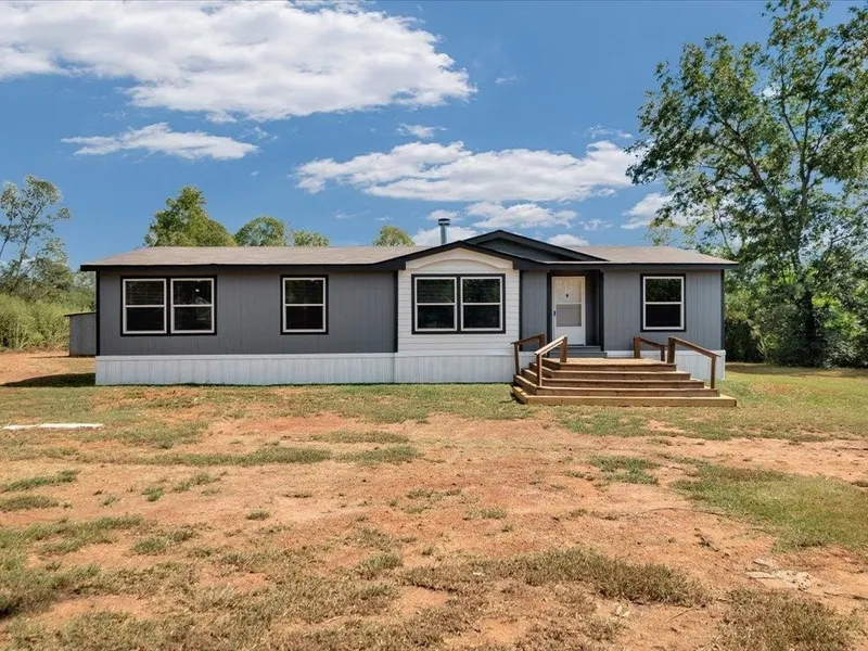 Sitting on 1.75 acres, this 3BR/2BA double wide mobile home is move-in ready with new flooring, fresh interior & exterior paint, full sheetrock, high ceilings, and energy-efficient double-paned windows. Gather around the cozy wood-burning fireplace or relax on the brand-new wooden deck—perfect for morning coffee or rocking chairs. The bright kitchen comes equipped with stainless & black appliances, while the oversized laundry room provides plenty of space for a freezer or extra storage. The primary suite offers a walk-in closet, soaking tub, and separate shower for a true retreat. The secondary bedrooms are spacious and both have walk in closets. Outside, enjoy room to roam with a pole barn ready for your personal touch. Conveniently located just 10 minutes from Cushing, Mt. Enterprise & Henderson, this home delivers comfort, updates, and a peaceful setting.