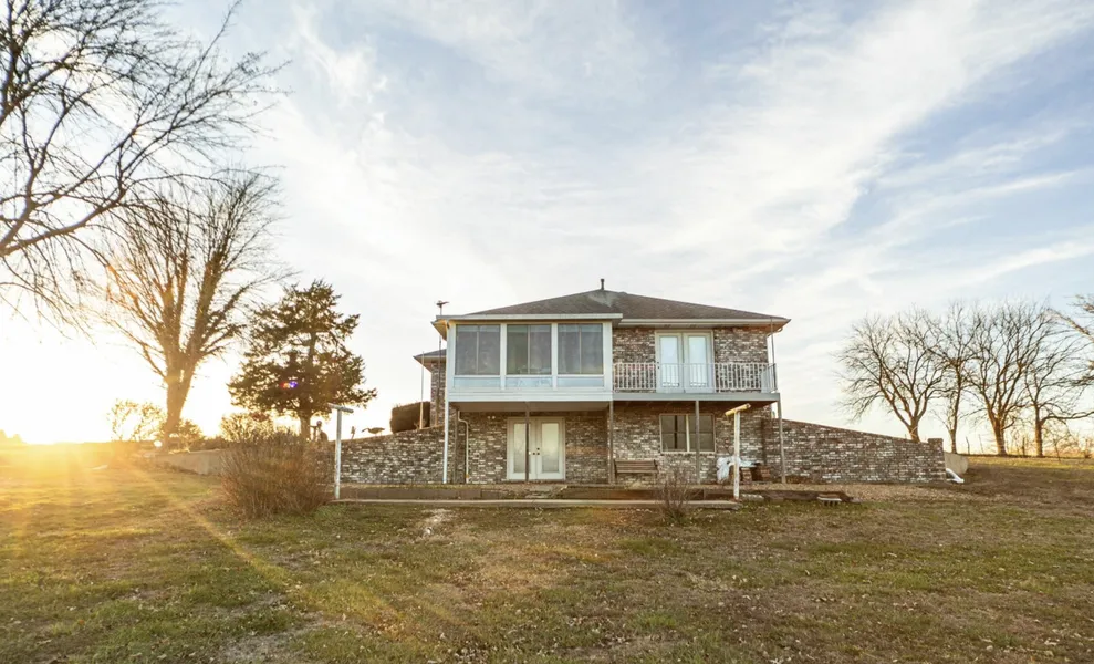 This well-maintained brick home sits on 39 acres just outside Stockton, MO, offering privacy, functionality, and stunning views. A long concrete drive leads to the home, which features an open kitchen, dining, and living area with access to an enclosed sunroom overlooking open fields and a large pond. The master suite includes a jacuzzi tub, walk-in closet, and private deck that shares some of the pond views. The main level also has a second bedroom, full bath, and laundry area. The mostly finished basement is set up as an in-law suite with a kitchenette, full bath, non-conforming bedroom, recreation area, pool table space, workshop, and has walkout French doors that access the open back yard area. The property includes a 48x40 shop with dual pull-through doors, perfect for equipment or necessary recreational vehicles when living this close to Stockton Lake. A smaller garage ideal for a she-shed or woodworking. The 39 acres combine open pasture and tree cover, with cattle-tight fencing and a large pond, suitable for livestock, hunting, or outdoor enjoyment. Located on blacktop near Stockton, this property offers country living with convenience.