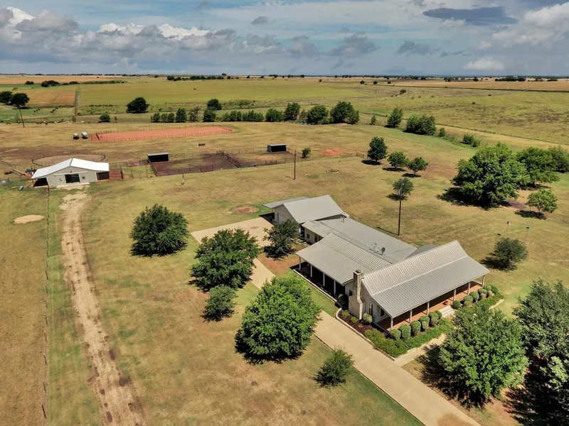 Pride of ownership shows in this 53.34 acre horse and cattle ranch with 3169 sf custom home in Holland, Texas. The home offers a 3bd, 3ba, with game room, office/den, mud rm, three covered porches, large living rm with fireplace and two car detached garage with "lean to" covered storage. The property is mostly level with black soil, two 20 acre coastal fields, wet weather creek (Cathey Creek) and a spring-fed pond. The horse barn has four stalls with tack rm and wash area. Additional improvements include 60' round pen, two 80'x80' paddocks with loafing sheds and 120'x200' riding arena. No expense was spared in the design, construction and maintenance of this property.