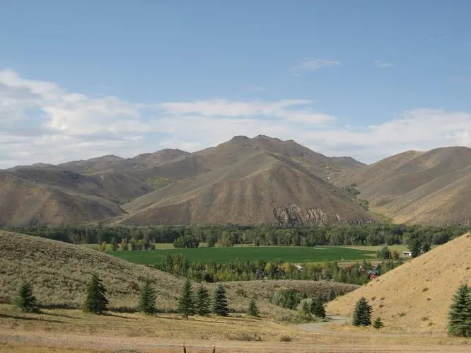 Water Gulch Ranch. Wood River Valley, Idaho. This unique beauty is centrally located in the Wood River Valley, only 10 minutes from the Sun Valley airport. The property consist of 139 deeded acres and offers spectacular views across the valley with year-around sunsets. The property offers upland bird hunting, attractive landscaping, water features and extreme privacy. The ranch has been historically operated with cattle and horse grazing. There is a well on the property which services irrigation and a sprinkler system from the unique log entrance to the building site. The ranch is only a twenty minute drive to world famous Sun valley Ski Resort.