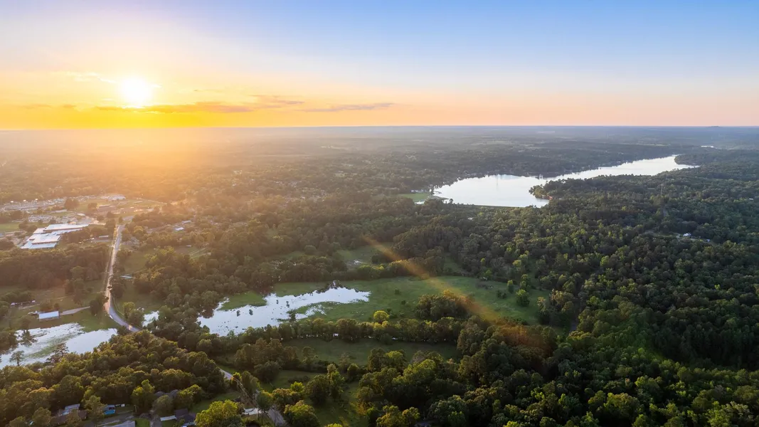 The Gladewater Ranch is a 139-acre estate in the heart of Gladewater, TX. It is a live water estate featuring a nice mix of cleared fields and dense forestry with well thought out improvements. The ranch offers a unique blend of city convenience and countryside serenity, with the charming town square and local restaurants just a five-minute drive away. The property is surrounded by piney woods,and features both sides of flowing Glade Creek and Victory Branch Creek adjoining neighboring Lake Gladewater. You enter the property through a private gated entrance, on a winding driveway that meanders through cleared fields to the beautiful and meticulously maintained estate.