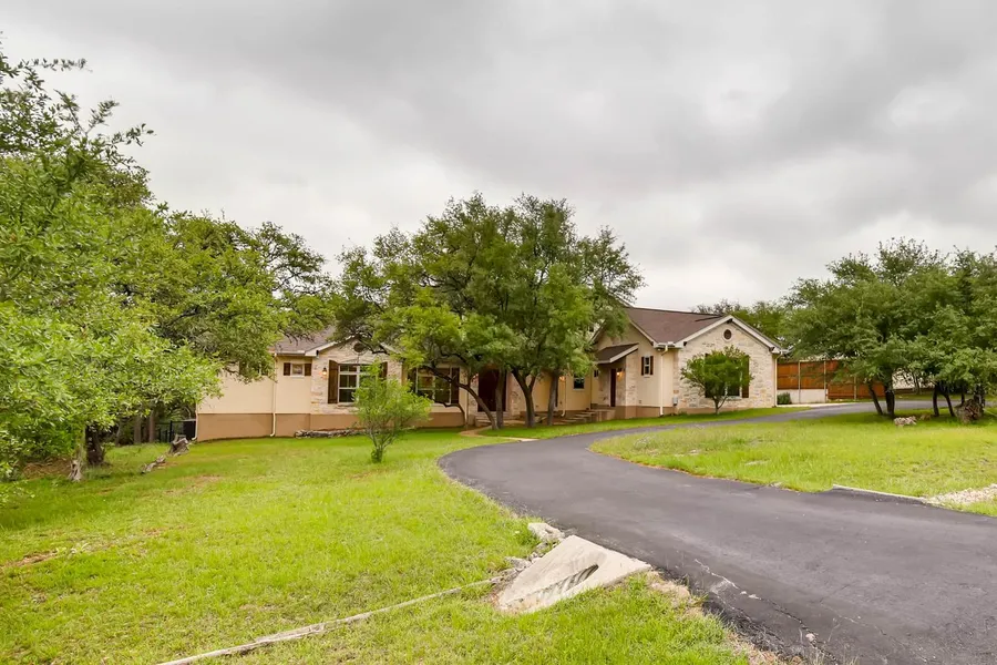 Texas meets Tuscany in this Executive Living style home with 4 bedrooms, 3.5 baths and side entry 2 car garage. Designed for entertaining and relaxing with family and friends there are 3 living areas, 2 dining. Master is down along with an additional guest bedroom with its own adjoining bath. 2 bedrooms up with full bath and cozy den area. Kitchen offers granite countertops, custom cabinets, gas cook top, built-in oven. Eat-in kitchen is open to den with fireplace. Master downstairs along with an additional half bath. Tile and engineered wood floors. Large utility room. Covered patio, upstairs patio and Juliet balcony. A portion of the treed backyard is fenced. Solar panels at the back of the property make this a more energy efficient home. Circular drive, side entry garage. Secluded and quiet cul-de-sac street. Countryside Views. Homeowners amenities include club house, pools, sports courts and a 52 acre Guadalupe River Access park. CISD. Convenient to IH 35 for commute to San Antonio/Austin. Quick drive to Creekside Development. Come Live the Good Life!