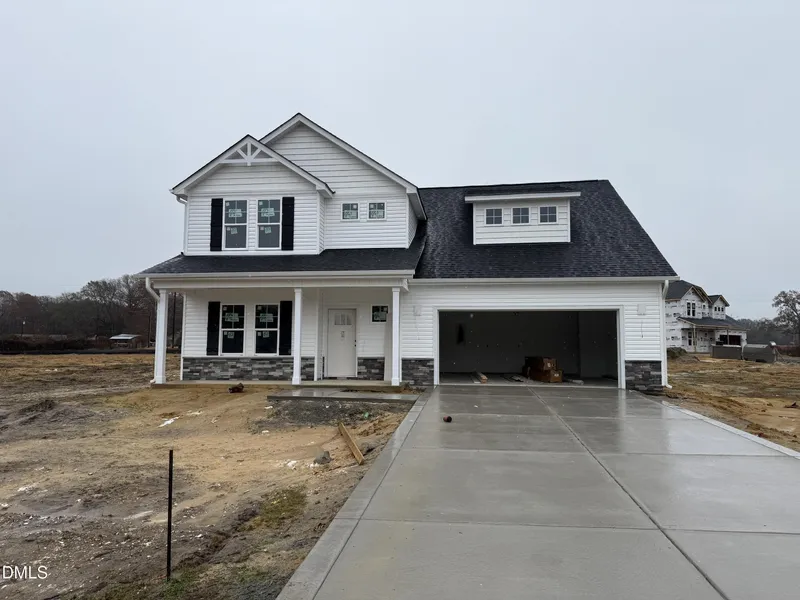 The Kingston Floor Plan is a stunning 2-story with 4 bedrooms, 2.5 baths, and built by Ben Stout Const., in the newly established Lucas Park Subdivision. Located in the desirable Brogden Community, Princeton School District, and minutes drive from I-95 and the future I-42 (Highway 70), Lucas Park offers unparallelled accessibility from Raleigh to the Coast, and seamless travel north and south! The master-planned community Eastfield Crossing is a short drive away offering even more amenities and conveniences. The main level of the home features a formal dining area, an open living/kitchen combo with granite countertops, walk in pantry, spacious living room with electric fireplace, and a large first-floor owner's suite with ensuite bathroom. Laundry room and half bath complete the first floor. Upstairs, you'll find two generously sized bedrooms and a full bath, providing ample space and comfort, as well as a spacious rec room. Call us to secure your 'home-sweet-home' in Lucas Park, where rural charm and urban amenity perfectly blend!