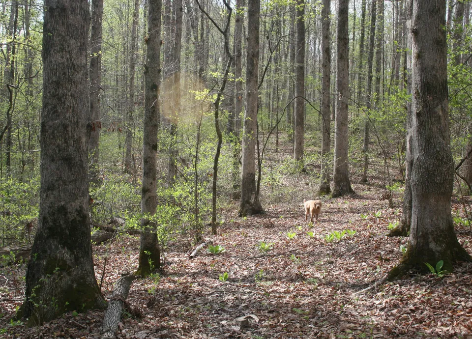 A manicured one-mile trail system winds through gentle topography and mature hardwood timber stands, including white and red oak, hickory, maple, beech, and more—leading down to the creek.
