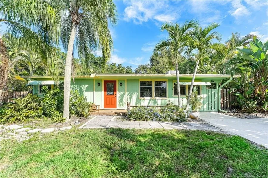 Paradise Found! This Adorable Key West Bungalow with Terrazzo Floors, Dade Pine Beams, and so much charm is nestled into the Riverside Heights Community. The fenced in yard is very private with mature landscaping providing a great Tropical setting. Your Deeded Community Day Dock is just a short walk away! The Metal Roof was installed in 2012, Water Heater 2022. The 1092 Sq Ft home lives larger than it seems with built-in shelves and plenty of cabinet space. This home is connected to the Public Water System and has Public Sewers available to connect to, but is currently still serviced with a Septic System.