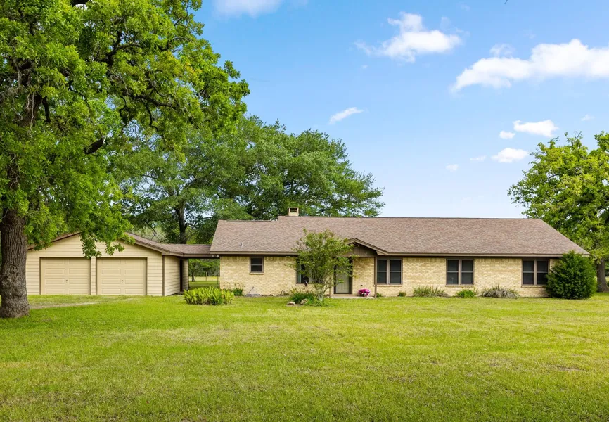 HUGE PRICE REDUCTION. SCROLL DOWN FOR VIDEO - Conveniently located just off Highway 71 between Columbus and Ellinger, Texas is this immaculate 2424 sq. ft. custom built brick home sitting on 2.134 prime acres of land. Enjoy entertaining in the spacious living room and sitting around the cozy brick fireplace after cooking dinner in the delightful white kitchen. This nicely appointed kitchen offers plenty of cabinets, a built-in breakfast table and a stainless-steel sink. Fridge is negotiable. For your larger gatherings, perhaps eat in the more formal dining area located just off the kitchen, yet open to the living room. 4 spacious bedrooms, 2 of which have built in desks and 2 bathrooms are sure to accommodate all! For those who work from home, a nice study with French doors will give you a pleasant area to focus on your work. The large laundry room boasts a utility sink, plenty of cabinets for storage and a broom closet. Tall sliding doors off the living room lead to your covered back patio where you can relax and take in some fresh country air. A deer proofed garden area is perfect for planting your vegetables for canning. Plenty of parking space with the 2 car detached garage with a covered breezeway to the house. Attached to the garage there is a small workshop area, perfect for handyman projects and additional storage. All this is nicely fenced on 3 sides. Property extends past the creek which is on the 4th side. This manageable parcel awaits its new owner to customize the home with their personal touches. Perfect for full time or weekend use. Call Nicola Hammett at 979/733/4594 to Schedule your private showing on this amazing property!
