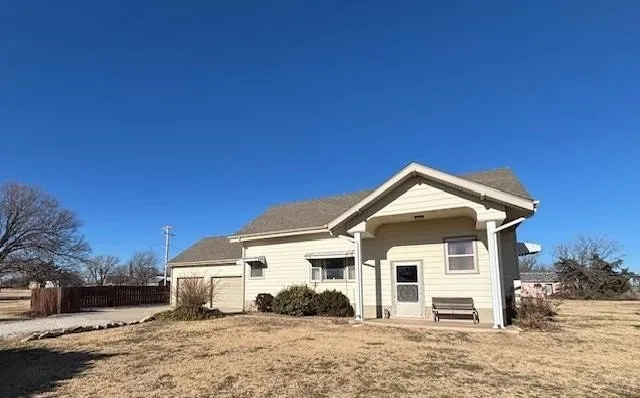 Incredible Opportunity on a Beautifully Maintained 2~acre parcel This stunning property boasts breathtaking views and wildlife and features 3 bedrooms and a full bath and fantastic garage space!! This charming property welcomes you with a lovely lawn and spacious 2 acres +\~ featuring a white farmhouse bungalow~style home spanning approximately 1275 sq feet, with a partial basement. Includes a double attached garage, garden shed approx. 12 x 10. Enjoy peaceful country living in this move~in~ready 3~bed, 1~bath home that seamlessly blends original details with numerous updates. Step onto the south~facing porch for morning coffees and sunset views of the beautiful Kansas landscape and wildlife The spacious living room boasts a custom south~facing arch window highlighting the beautiful countryside, open to the dining area and kitchen flooded with appliances remaining with the property. The main floor also features three bedrooms with ample closets, updated bath, and a utility\mudroom with plenty of storage and space. The basement, accessible from the kitchen, includes, storage, storm shelter, and mechanical area. Central heat and air, along with low~maintenance exterior siding. With 2 acres in a prime Kansas hunting area, this property offers endless possibilities. Don't miss out on the chance to own this beautifully updated home in a serene rural setting with convenient access to Olmitz KS.