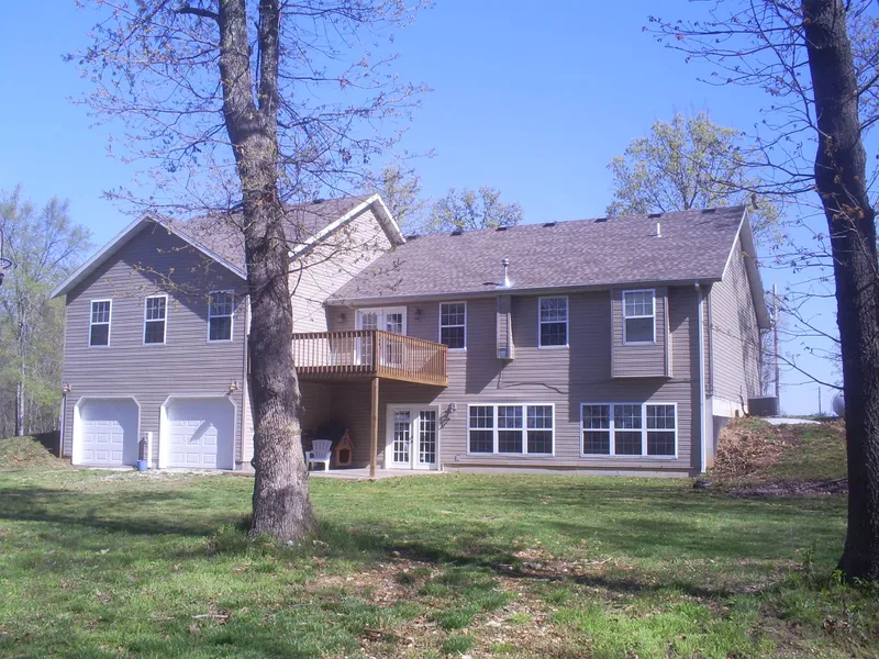 Custom built home on 14 mostly wooded acres with nice hillside spring and wildlife galore! Home is built with 6" walls, exotic Kempas hardwood floors, quality carpet, and tile, Custom Knotty Alder kitchen cabinets with stone back splash, vaulted ceiling, 3 beds, 2 baths, and 2 car attached garage on first level, full finished walk out basement with huge family room, full bathroom, and 2 car built in garage, 30 yr shingles. Home has a very private setting among oak trees and is within 1 mile of floatable river. A must see move in ready home. Schedule your appointment today!! Home is realtor owned
