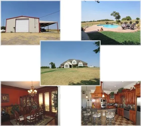 Gorgeous 3 bedroom, 3.5 bath very custom home has great country kitchen, downstairs and upstairs living areas, soaring entry way, beautiful formal dining room, private study and more. There is even a dedicated heated and cooled exercise room off the garage. This home features real hardwood flooring and extensive custom woodwork including crown moldings, beamed ceilings, door and window frames and lots of custom cabinetry. Outside, youll enjoy the beautiful in-ground pool, beautiful rolling acreage and 30 X 40 insulated shop building. Additional property is available.