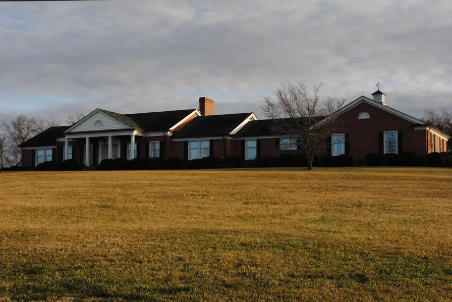 Gorgeous brick with many porches overlooking 14+- acres, oak flooring, 2,000 square feet outbuilding, quality building products, traditional colonial ranch custom built.