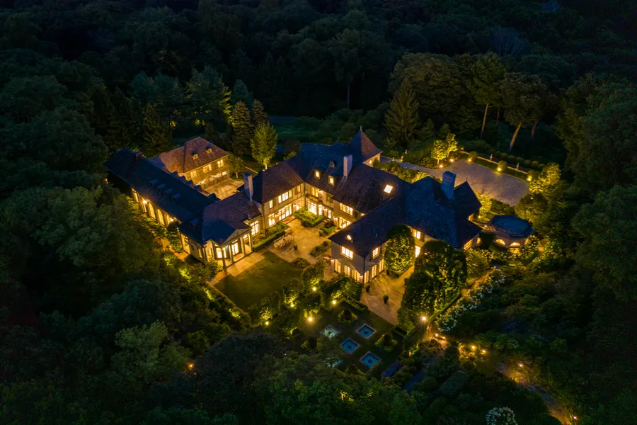 The residence features stylish living space comfortably spread over four levels, including eight bedrooms, ten full bathrooms, three half baths and six fireplaces. Movement within the house is a pleasure, as each room fuses to the next while thrilling you with a unique artistry. Principal rooms present you with endless options for recreation, relaxation, creativity and productivity palatial reception hall, ravishing formal rooms, paneled library, LOrangerie, office, gym, billiards room, a sommeliers dream wine cellar and theatre-quality screening room. Impeccable design meets smooth functionality in a gourmet kitchen and butlers pantry that will entice even the most reluctant cook, while a state-of-the-art catering kitchen on the lower level facilitates large-scale entertaining.