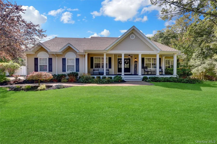 A Stunning Ranch in the desirable Three Village Club. The premier gated community in East Setauket. Beautifully and recently renovated with sophistication and style. The charm of the front porch leads to a welcoming and wide entry foyer. Step inside where the Open concept Great room stuns with its 12 foot ceilings and custom woodwork complete with detailed molding that wraps around the large wood-burning fireplace. Hardwood floors throughout the home. Premium Pella windows with custom shades. The Chef's Kitchen created for your culinary dreams and designed for beauty and performance with Top-of-the-line stainless appliances boasts a Thermador range and Bosch dishwasher, gleaming Quartz countertops, trash compacter, custom cabinetry, and generous sunlit prep spaces. Soaring ceilings in the formal dining room. A Custom designed powder room shows its unique and elegant design! This home offers four spacious bedrooms with crown moldings and wainscoting. with an Ultra Bright full bathroom serving the additional three bedrooms. The sunlit primary suite has his-and-hers walk-in closets, a bright, luxurious En-Suite with a spacious walk-in shower, and a jetted soaking tub. The backyard is your own private oasis with lush landscaping, New Cambridge paving stone patio, a custom built inground pool with a relaxing waterfall, covered outdoor living room with a custom stone fireplace plus an outdoor kitchen complete with gas flattop w/ warming drawer and gas BBQ makes this the Perfect Resort-like backyard for entertaining or simply relaxing. The full basement is a must-see with new Lux Vinyl flooring, wet bar, full bathroom, office space, activity rooms and plenty of storage! Plus 3 Zones heating, Natural gas, Sewers system, 10 Zone Inground Sprinklers and attached two-car garage with interior access. The Three Village Club offers an elegant clubhouse (Victory Blvd) with an inground pool, tennis courts and Event Room w/ kitchen for large family parties. This home is a Must See... Call me for more information and a private showing.