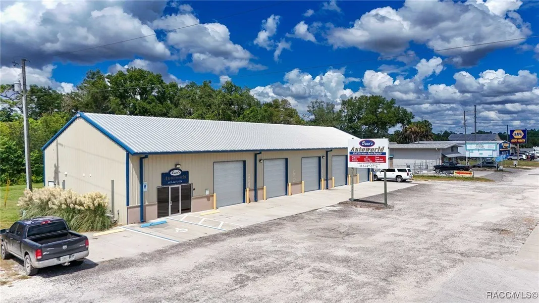 Let your imagination set you free to determine what the future of this prime commercial location can be! From future retail, restaurant, warehouse or someone's personal toy barn - let your imagination run wild! The real estate consists of 1.14 acres commercially zoned with 201FT frontage on highway 19. All centrally located by the intersection of Hwy 40 and outside the FEMA flood zone for an ideal location for your future endeavor. The building consists of 4800 sq ft steel, insulated structure with 400 Amp electric service all connected to city water and onsite septic/drain field. Two finished interior spaces allow for a front office with waiting room, work counter and public restroom along with a lounge area for employees with a kitchen and separate restroom. Both are heated and cooled by separate ductless mini-split units. Certainly, one of the newest buildings with highway frontage in what will be the first commercial center after exiting the future expansion of the Suncoast Parkway. All current business fixtures, equipment and personal property attached or otherwise do not convey under this offering, but sellers will entertain a separate discussion on the business and equipment.