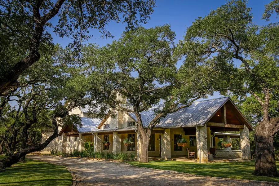 Surrounded by beautiful century-old oaks, this fantastic property has a historic feel with the best modern amenities! Drive through the private gates and follow the winding drive to discover a serene retreat on 14 acres in downtown Boerne. This hidden gem is one of Boerne's best-kept secrets. Sprawling property features two spectacular homes - one is a gorgeous renovated home from the 1890's era, the other is a 5,300+ sq ft home with interior rock walls built in 2013. Experience all this estate has to offer, including two lovely guest cottages, a sparkling pool, a great outdoor entertaining area, and a barn with RV storage.