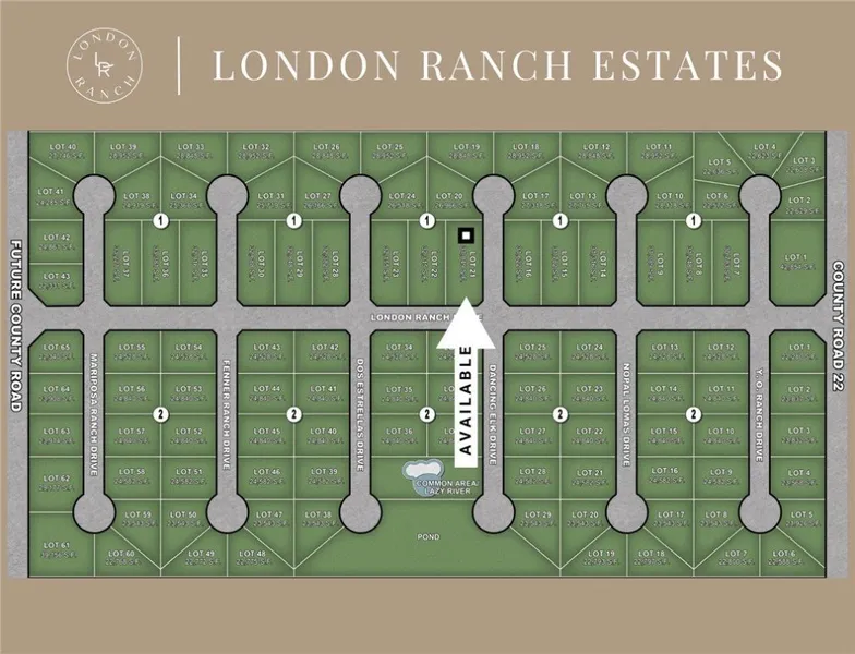 Introducing London Ranch Estates, London's newest gated community, where serene views of untouched farmland provide the perfect backdrop for your dream estate. Nestled in the heart of London, this brand new neighborhood offers expansive homesites of at least half an acre, creating a unique opportunity to design and build a custom home that fits your vision. Designed for privacy, tranquility, and elegance, London Ranch Estates features 108 spacious homesites, each thoughtfully planned to offer a balance of seclusion and community. Residents will enjoy premium amenities, including: a luxury ranch-style gated entrance for enhanced security and sophistication, a resort-style community pool and lazy river for ultimate relaxation, a scenic pond perfect for outdoor enjoyment. With no restrictions on builders or timelines, you have the flexibility to select your preferred builder and architect and start construction when you're ready. Ideally located just minutes from the highway, this prime location provides easy access to top-tier dining, shopping, and entertainment. Secure your luxury homesite today and experience the best of upscale country living! *Map is an artist's rendering and may not reflect exact site features.