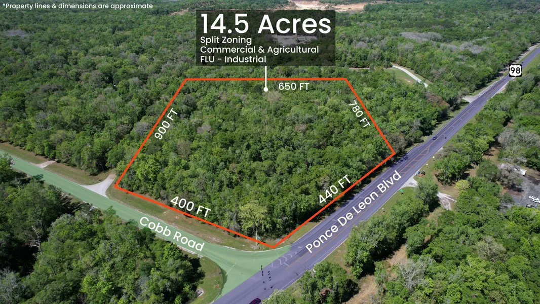The subject is on the north-west corner of Ponce De Leon (US-98) & Cobb Rd, featuring 440 frontage feet on Ponce De Leon Blvd and 400 frontage feet on Cobb Rd. Average annual daily traffic counts on Ponce De Leon Blvd are 7,500 and 10,500 on Cobb Rd.