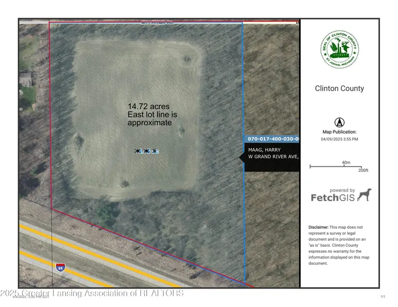This parcel has some woods on the east side of the farm ground. 14.72 Acre parcel can be purchase with adjacent 14.72 acre parcel for a total of 29.44 acres. All offers subject to Eagle Township and Clinton County land split approvals. SEV TV & Taxes based on greater lands