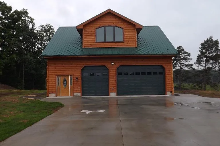 Newly constructed log-sided dwelling - ground level has a 2-bay garage with 12' ceilings and insulated garage doors, storage and half bath. Main entrance opens into a foyer of cherry walls, tile floors, and log stairs leading to the living space on second level. Kitchen has cedar cupboards, all new appliances with 5 year warranty, and doors leading to 13x37 deck with view. Living room has vaulted wood ceilings, large windows and hardwood floors, laundry/pantry just off kitchen, central AC. Concrete driveway, storage building, pond, swamp, some nice woods along side and rear of property.