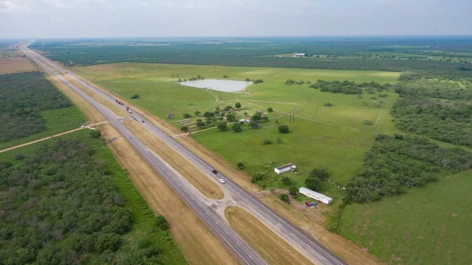 The ranch is located 14 miles from Victoria, 72 miles from Corpus Christi, and a little over two hours from San Antonio and Houston. With an impressive 3,400 feet of frontage on Highway 77, the property offers convenient access for both personal and commercial purposes. It also has prime frontage on the future I-69 corridor, making it an ideal location for a distribution warehouse or trucking yard. The proximity to major cities and highways makes this property a great option for those looking to blend rural living with easy city access.
