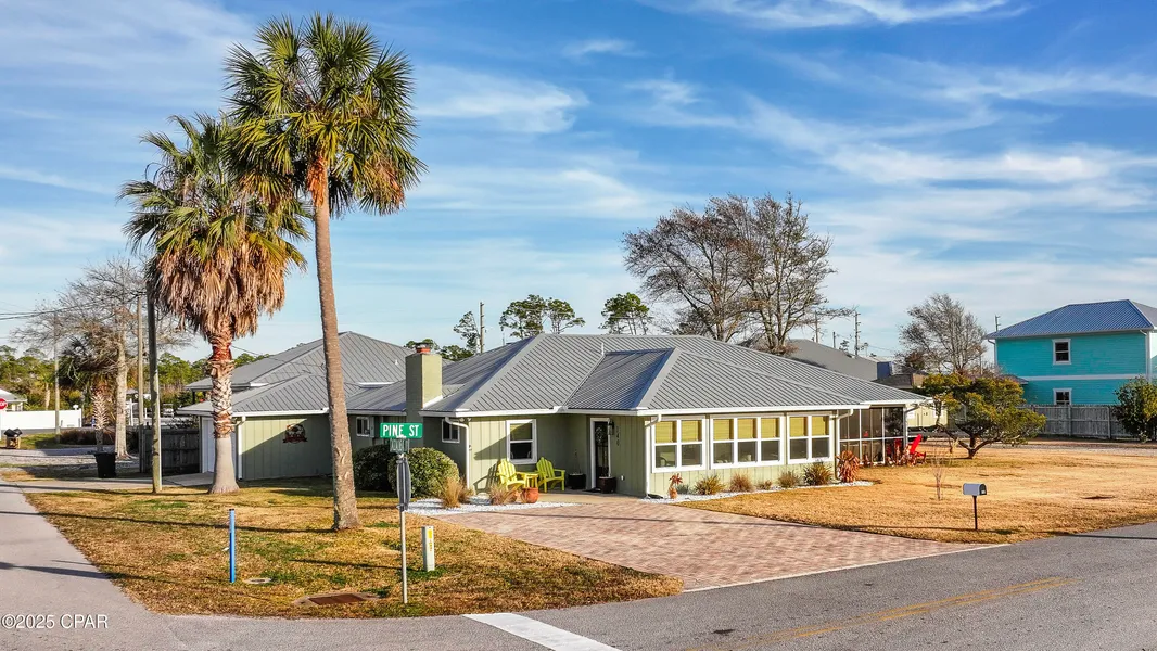 Beautifully Updated 5-Bedroom, 3-Bath Home in Mexico Beach - Steps from the Beach! This tastefully updated home sits on a corner, double lot in the charming and sought-after Mexico Beach. With 2 primary suites, a light filled Florida room, and a host of thoughtful upgrades, this property is a must-see! Inside, the open and airy feel is accentuated by large windows in the Florida room, seamlessly connecting to the inviting living area. The kitchen features a stunning backsplash, granite countertops, a center island, and a breakfast bar. Directly off the living area is the expansive screened and tiled back porch--perfect for entertaining or relaxing. The master suite is a true retreat, featuring an oversized walk-in closet with a dressing area, plus a luxurious full bath with a tile shower and separate tub. The second master suite, located on the opposite end of the home, offers a private retreat with a ensuite bathroom with a tiled shower, freestanding slipper tub, double vanity & walk in closet. The other bedrooms are generously sized, with one offering direct access to the second screened porch. There's no shortage of storage here, thanks to multiple closets, screened-in areas, and a spacious yard. There's plenty of space for both quiet relaxation and entertaining family and friends. Additional features include a 1-car garage, room for a golf cart, a shed, and a large driveway with space for a boat. The property is in an X flood zone, which does not require flood insurance. Mexico Beach is a golf cart-friendly community, giving you quick access to everything the area offers--from fresh seafood, public boat ramps, and miles of beaches to stroll. Come relax and enjoy the endless seashells and sunsets at Mexico Beach. Check out the 3D tour and start LIVING THE BEACH LIFE TODAY!