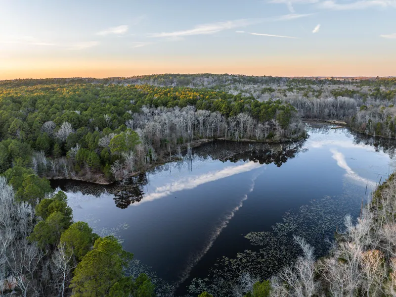 The propertys vegetation is dominated by towering pines and mixed hardwoods, with patches of yaupon, muscadine grapevines, and dogwood adding variety. Native grasses and wildflowers flourish in the openings, enhancing the scenic beauty and contributing to the habitat for pollinators and other wildlife.
