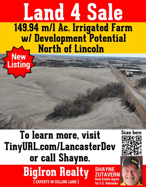 Description of Property: Prime Irrigated Farmland with Future Development Potential – Just North of Lincoln. Don't miss this rare opportunity to own highly productive irrigated farmland with exceptional future development potential along Raymond Rd, just north of Lincoln. Farm it, rent it, develop it, and/or when the time is right, capitalize on its value by selling by the square foot.