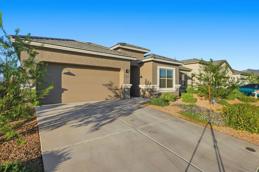 Beautifully upgraded home in the heart of the Rocking K community! This richly enhanced 1,815 sq ft single-story residence offers luxurious upgrades and modern comfort throughout. Enjoy an open-concept design with 9-ft ceilings, quartz countertops, white cabinetry, stainless steel appliances, and a designer kitchen backsplash. Every detail has been thoughtfully finished—professional interior paint, custom accent walls, and elegant “his & hers” cabinetry in the primary bath. Step outside to a perfectly landscaped backyard with lush turf, paver details, and a covered patio that frames the most stunning mountain views. Additional highlights include a stunning Ironworks front door, epoxy garage floor, and whole-home water softener and filtration system. Unlike new construction, everything is already complete—just move in and start living your dream. Welcome Home.