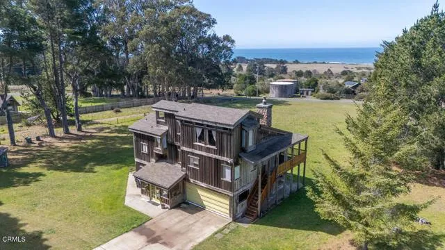 Unique 3-story Mendocino home with ocean views! The interior displays alluring wood walls, staircases, and classic wood beams throughout. There is a 'lookout' on the 3rd floor with expansive views, where you can enjoy watching the whale migrations. The 1st floor offers a very large multi-use room with a concrete floor, for your workshop, personal gym, or additional storage. There is an attached bathroom with laundry hookups. Stairs ascending to the 2nd floor take you to the main living quarters: kitchen, living room with a fireplace surrounded by impressive stonework, primary master suite with a wood- burning stove and en suite bathroom. There is an additional half-bath for guests. The second story has a lengthy deck, encircling the front and north side of the home, the perfect hangout for enjoying the natural beauty of the Mendocino Coast. Deer, wild turkey, and great blue herons frequently come to visit for your viewing over the expansive yard. The 3rd floor takes you to the loft, which can be used for sleeping or an office. There is a unique 'lookout' observation room, ready for your telescope. Currently configured as a spacious 1 bedroom, an older septic report on file allowed for a 2nd bedroom. A current septic report should be done to verify that the spacious 1st -floor workshop can be converted to an additional bedroom or apartment. The attached garage can accommodate two cars. The house sits at the back of the 1.84 acre parcel, another desirable feature. A separate storage shed on the property will house your gardening tools. Situated between the State Historic Point Cabrillo Light House (0.8 miles) and Caspar Beach (0.5 miles), the property is near Russian Gulch State Park (1.75 miles). The charming town of Mendocino is a short drive to the south (3 miles).