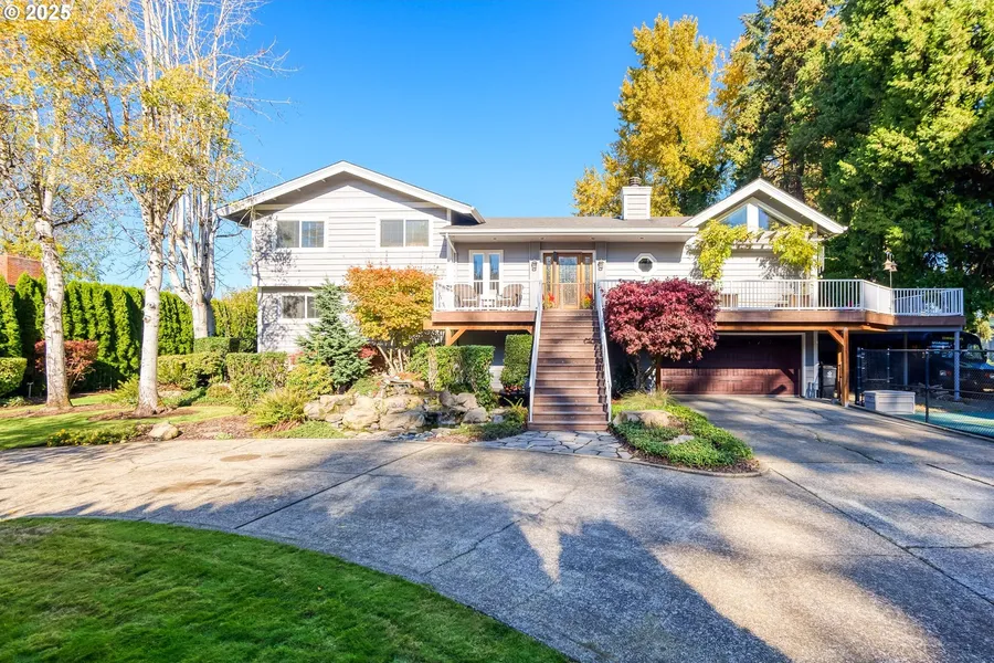 Welcome to this one-of-a kind property located in the "no-wake" zone on the banks of the Willamette River. Spectacular landscaping greets you upon entrance to the property, which includes a sport court and over-sized driveway with a gorgeous fountain centerpiece, and tons of parking. The stunning open floor plan on the main level of the home includes a light and bright living room, large dining area, and an updated kitchen that are built for entertaining. The kitchen was renovated in 2023 and upgrades include new counter tops, backsplash, sinks/faucets, hardware, commercial-grade ice-maker, lighting, ceiling fan, and painted cabinets. Dual primary suites on separate levels add a layer of privacy, and upgrades include bathroom renovations, and new paint, carpet, and molding in the bedrooms. The upstairs suite has a lovely deck off it, and the downstairs owner's suite has been totally renovated, including the bathroom and private deck with a sound system. The bonus room on the lower level is perfect for year-round fun with plenty of space for whatever you can imagine, as well as separate entrances for potential living spaces. The outside of this home offers even more entertainment and relaxation value, starting with a massive deck, overlooking the river. There is plenty of storage space for your toys, a greenhouse in the side yard, beautiful landscaping, extensive outdoor lighting throughout, a private dock, and a new(2022) walkway to the dock. Additional features include a new(2024) roof, new(2024) water system, gas hookups for a BBQ, new electrical for the hot tub and RV, and so many more. Opportunities to own a home like this don't come around very often. Now is the time to start making your dreams come true!Sellers are willing to contribute towards buyers rate buy down.