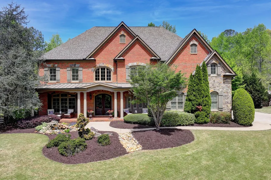 Corner lot with open floorplan and flat backyard ! Absolutely stunning all sides brick estate home perfectly situated on a level lot in the middle of one of the most highly coveted, swim/tennis neighborhoods in Milton, Triple Crown. Enjoy spring evenings relaxing on your covered screened in porch, overlooking your private, wooded backyard with plenty of room for a future custom pool oasis; or enjoy the fire pit and hot tub, plentiful gardens, and beautiful trees while eating al fresco on your stone patio. A breathtaking koi pond greets you as you step onto the oversized front porch. Once inside, the grand two story foyer welcomes you home along with a vintage, wood paneled office on the left, and separate dining room on the right. Guests enjoy a private bedroom with en suite bathroom on the main level. The heart of the home is the massive, open main living space spanning from the formal living room with fireplace through to the separate breakfast room, custom chef's kitchen, through to the vaulted keeping room with stone fireplace. The gourmet kitchen features a secret walk in pantry, range hood, high end stainless steel appliances, and custom wet bar. Retreat upstairs to the spacious primary suite with fireplace and separate sitting area, large spa bathroom, and huge walk in primary closet with built in closeting. All three secondary bedrooms upstairs have their own bathrooms and large closets. Laundry room is located upstairs for convenience and easy everyday living. Media room on upper level makes a great office or playroom. Richly appointed terrace level includes guest suite, custom bar, gym, and abundant space for entertaining. No carpet in the entire home! Fresh white paint on both the main and upper levels. Newly refinished hardwood floors, new flooring on terrace level, new roof, new backyard fencing, updated light fixtures, and plantation shutters throughout. Professionally landscaped grounds with $35K in recent upgrades. Triple Crown is districted for the trifecta of award-winning Milton public schools - Birmingham Falls Elementary, Northwestern Middle, and Milton High. School bus stops directly in front of the home! Active social events for adults and children including frequent ladies nights, book club, adult holiday party, Breakfast with Santa, Halloween, and more! Amazing location less than five minutes to downtown Milton, 10 minutes to downtown Alpharetta, and less than 15 minutes to Avalon and GA-400. Welcome home to your luxury estate home in Milton horse country!