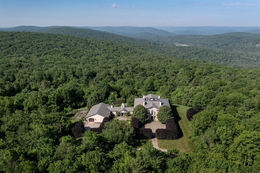 Villa Catarina - A grand Tuscan-style estate spectacularly situated on 1,000+ acres in the heart of Litchfield County offers unparalleled privacy and security as well as magnificent tri-state views of MA, CT and NY. Approached by a long scenic driveway, the exquisite limestone and stucco Palladian-inspired villa by award-winning architect Thomas Beeby offers superior, commercial grade construction with 5 bedrooms, 4.3 baths and 6 fireplaces. Inviting terraces and formal gardens with dramatic westerly views of the surrounding wooded hillsides, along with a Har-Tru tennis court complete this enchanting property. Peace and tranquility abound with this rare and exceptional offering.