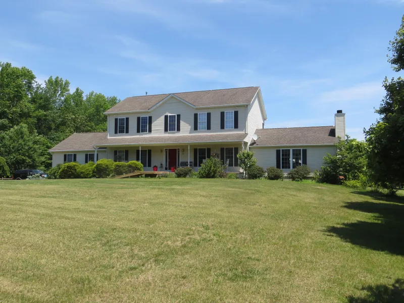 Large outbuilding (70x48 with 14' bay doors and 16' interior height)currently used for horses and home business-allows lots of options. Colonial home recently remodeled to provide 1st floor suite with BR,den,Full bath and walk in closet. Large kitchen with breakfast room, laundry room, formal entry, living room with sliding barn door privacy, formal dining room and HUGE family room with cathedral ceiling and fireplace complete the first floor. Upstairs offers landing reading area, master suite with walk in closet, dressing area, and full bath. A second full bath, two large bedrooms and an office completes the 2nd level. The extra deep basement is partially finished with complete office area with separate A/C. A large two level deck and hot tub offers views of your private estate. Riding arena, paddocks and run in sheds for horses. Enclosure for chickens and ducks for your own egg supply. Close to Joint MDL base and major transportation routes. Everything finally at one location!