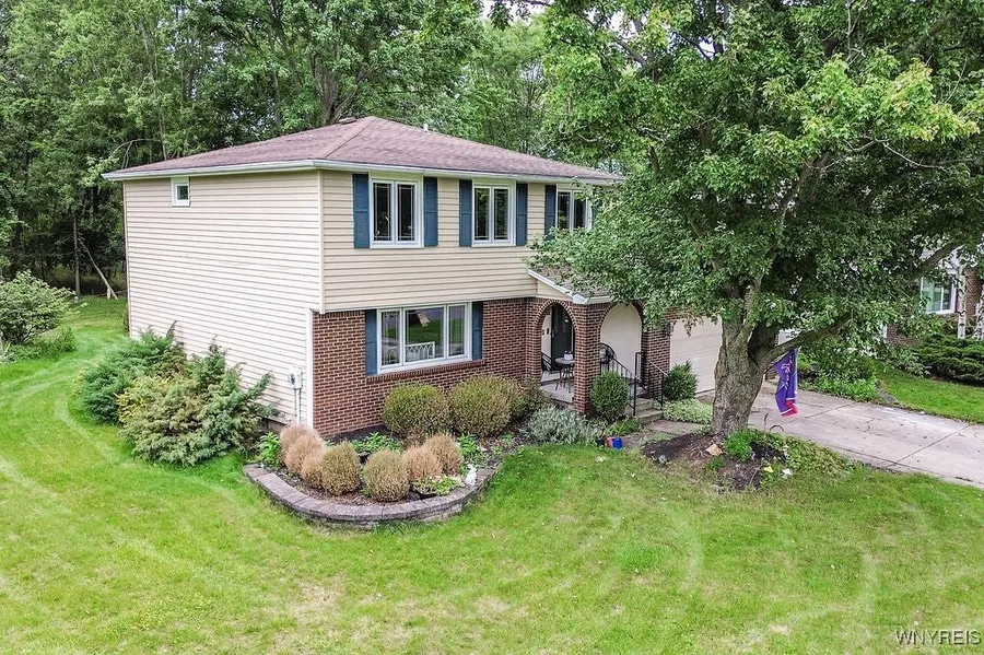 Park-like living in the City of Lockport! Welcome home to this spacious 3 bed/1.5 bath Colonial with .49 acres that borders Joseph E Kibler Park & has NO REAR NEIGHBORS. The exterior features brick & vinyl siding, perennial gardens, a double-wide driveway leading to the attached garage & a quiet & peaceful covered deck with gazebo that overlooks the woods. The interior of this home features plenty of natural light via updated vinyl windows & 2 skylights; hardwood floors run throughout the LR/FR/DR. The kitchen showcases granite countertops, SS appliances, pantry & breakfast nook with sliding glass door that leads to the covered deck; electric FP in FR & half bath round out the 1st floor. Newer carpet & paint upstairs. Primary bedroom with walk-in closet connects to full bathroom with tiled floors, walls & shower plus two additional generously-sized bedrooms. Add your final touches to the partially finished basement & turn that space into your own vision! Showings begin immediately.