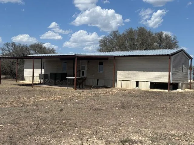 This 155.8 acre property with NICE, NEAT and CLEAN fully furnished mobile home offers GREAT access! Less than 1 mile off highway, and an easy 15 minute drive to Rocksprings! The metal cover over the mobile homme provides additional coverage and shade over front porch, as well as providing cover for back deck. All furniture, major appliances and small appliances will convey. The 2 bedroom/2 bathroom home is exceptionally nice and clean! Appliances conveying include: refrigerator, range, washer, dryer, microwave, Keurig coffee maker. Furniture conveying includes living room furniture + TV, dining table, bedroom furniture. The private water well, licensed septic, 8x40 connex storage container, skinning rack, and barn for ATV storage are added amenities! 3 blinds, and 3 feeders all convey. Native wildlife in the area consists of Whitetail Deer and Turkey with exotics such as Axis and Blackbuck. Property is fenced on 2 sides with 4 strand barbed wire. Terrain is gently sloping, allowing 2 wheel drive throughout the ranch. Moderate cover of Live Oaks, cedar, persimmon and agarita. Ag exemption in place, via cattle grazing lease. Priced at $749,900. Seller will consider selling the tract with improvements separately (77.9 acres).