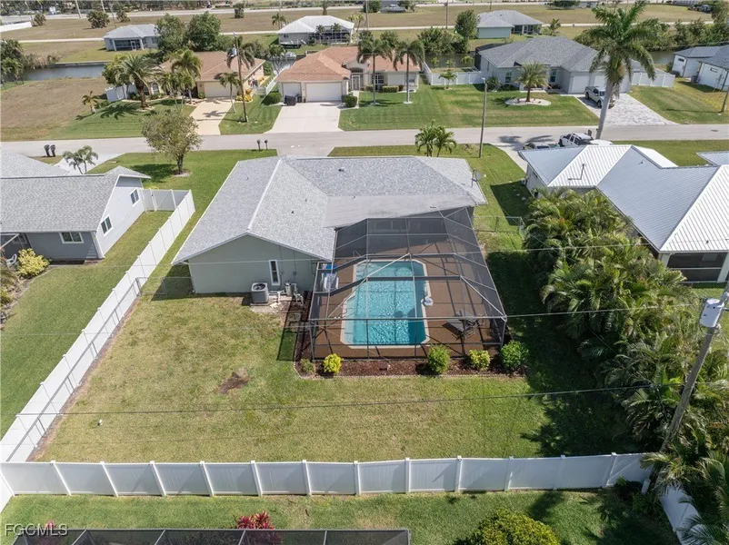 Ready for immediate occupancy! Welcome home to your Florida pool retreat, where comfort, style, and peace of mind come together at an incredible value. Perfectly positioned outside any flood zone, this residence blends smart upgrades with timeless Florida living, offering space, flexibility, and a lifestyle you'll love. Inside, you'll find three spacious bedrooms plus a versatile den/office that recently served as a fourth bedroom, giving you the freedom to work, host, or simply spread out. The floor plan flows effortlessly, with a formal living and dining area for special occasions and a cozy family room off the kitchen for everyday connection. The kitchen is both stylish and functional, featuring granite countertops, stainless steel appliances, and a welcoming breakfast bar. This home is move-in ready with thoughtful updates: a new roof (2020), AC (2021), water heater (2021), large refinished pool (2020) with new heater (2023), impact windows and doors (2021), hurricane-rated garage door (2023), and an irrigation system (2020). Tile flooring throughout ensures easy-care living with a clean, modern feel. The master suite provides private lanai access, a walk-in closet, and a tiled shower bath, while two additional guest bedrooms share a beautifully updated double-sink bathroom that also functions as a pool bath. Step outside to your private screened lanai and heated pool-designed for year-round enjoyment. Whether you're sunbathing, entertaining, or relaxing in the shade, this outdoor oasis makes every day feel like vacation. With city water and sewer, a fully fenced yard, and complete impact protection, this home is as practical as it is inviting. Its central Cape Coral location places you close to shopping, dining, and everyday conveniences, while still tucked into a peaceful neighborhood. Whether you're searching for your permanent Florida home or a sunny seasonal getaway, this property delivers lifestyle, upgrades, and value all in one.