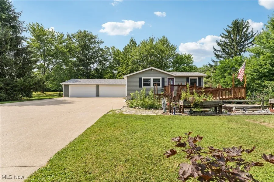 Welcome to this charming 3-bedroom Ranch home in Chardon, OH, nestled on over 2.5 acres of peaceful, scenic land! The long driveway sets the home far back from the road, offering plenty of privacy and tranquility. As you approach the front door, a welcoming ramp invites you to imagine a beautiful garden haven - picture strolling through a lush garden maze right at your entryway. Prefer a more direct entrance? The ramp can easily be removed to suit your needs. Step inside to find a spacious living room with vaulted ceilings that flows seamlessly into the generous dining area - an ideal setup for hosting family gatherings and festive dinner parties. The kitchen sits conveniently at the back of the home, perfectly positioned so you can cook and socialize without missing a moment. To the right of the dining room, a hallway leads to two comfortably sized bedrooms, a full bathroom, and a convenient half bath with a vanity area. Just off the living room, you'll find the final bedroom - perfect for a home office, guest room, or cozy retreat. Downstairs, the expansive basement offers endless possibilities - from storage and workshops to future finished living space. The attached 4-car garage provides ample room for vehicles, tools, and hobbies, with an additional workroom at the rear for your projects. Outside, unwind on the back deck with your favorite drink and a good book while enjoying the serene surroundings. With the home ideally situated in the center of the lot, you'll love the generous front and backyard space for gardening, play, or simply soaking in the outdoors. Don't miss your chance to explore all the potential this beautiful property has to offer - schedule your showing today and envision your future here!