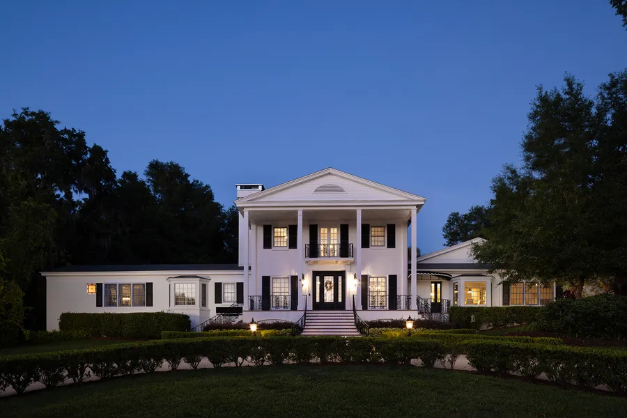 Auction Property. AUCTION BIDDING OPEN: Bidding ends September 24th. Previously Listed $2.75M. Current High Bid $1.45M. Showings Saturday & Sunday 1-4pm, and Daily By Appt. Step into a world of lakeside opulence at this exquisite sanctuary in Mount Dora, nestled along the serene shores of Lake Gertrude. This iconic estate, designed by the esteemed architect James Gamble Rogers, echoes the timeless elegance of the historic “Beauregard-Keyes House” in New Orleans. Set on 1.3 acres of lush, west-facing land and 125 feet of coveted private shore, the property captures the essence of luxury living with breathtaking sunset views and impeccable modern amenities. The grand main residence, complemented by a spacious guest cottage, offers a total of five bedrooms, allowing guests of any sort space for privacy and comfort. Enjoy the splendor of formal living and dining rooms, a gourmet kitchen with an expansive cooking island, and a secret temperature-controlled wine cellar capable of storing over 1,000 bottles, fit to thrill any connoisseur. The outdoor paradise features lush gardens, brick pathways, a private sandy beach, and a dock for your boat. With a Generac generator ensuring uninterrupted power, this estate blends historic charm with modern sophistication, offering an unparalleled lifestyle in the heart of Mount Dora.