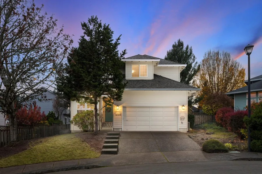 Set on a peaceful cul-de-sac, this inviting 4-bedroom, 2.5-bath home blends timeless design with modern updates. Soaring vaulted ceilings and expansive windows flood the interiors with natural light, creating an airy atmosphere throughout. The main floor features an open-concept formal living and dining space, ideal for gatherings, alongside a second great room that seamlessly combines the kitchen and family room. Perfect for entertaining, the family room centers on a cozy gas fireplace, and the sliding door provides easy access to the backyard. A versatile main-level bedroom offers flexibility for guests or a home office. The 2023 remodeled kitchen is a showpiece, featuring granite countertops, a butcher-block island with eat-bar seating, subway tile backsplash, stainless steel appliances, and a pantry for storage. Upstairs, the vaulted primary suite serves as a private retreat with a gas fireplace, walk-in closet, double sinks, and a soaking tub. Step outside to the expansive, fenced-in backyard with raised garden beds and a patio that's great for outdoor dining or play. Just blocks away, enjoy easy access to multiple shopping centers with restaurants, grocery stores, and a theater. Barrows Park is nearby as well, offering a playground, trails, and scenic green space. A rare combination of light, space, and convenience'this home delivers the best of suburban tranquility and everyday accessibility.