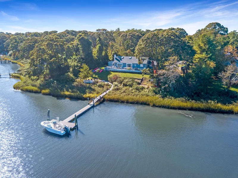 Nestled at the end of a long driveway, and tucked away like a hidden treasure, lies this 2+ acres private waterfront estate. Here, you will find a secluded oasis including, 170 feet of waterfront, your own private dock, sweeping views of East Creek, and a charming modern home. On the grounds you'll enjoy an in-ground, heated, mineral water pool, a saltwater hot tub, fishing and boating off your own private dock, on a rare and expansive piece of tree lined property. Inside you'll find three bedrooms, two and half baths, a wood burning fireplace, and a full walkout basement with a laundry. An additional structure with a detached 2 car garage/work studio and loft, which provides the perfect bonus space for an artists studio, game room or office. The home is move in ready, with opportunities for expansion as well. You'll be surrounded by award-winning vineyards and renowned restaurants, farm stands and great shopping. In short, this extraordinary offering can be your generational homestead to enjoy peace and tranquility for years to come!
