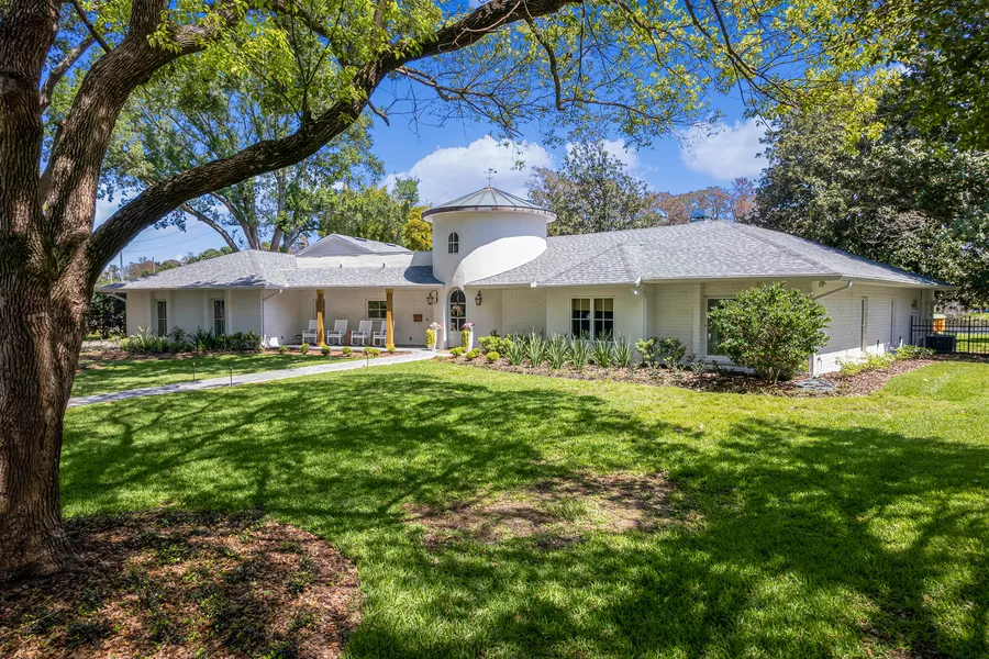 Elegant one-story waterfront home in the highly sought-after Spring Lake/Country Club of Orlando neighborhood. Recently expanded and beautifully renovated, this modern French country-style home sits at the end of a quiet cul-de-sac on 1.15 acres. Tons of room to further expand, add a pool or move right in and enjoy the peaceful setting overlooking the pond and the 6th hole of the CCO golf course. Enter through a gorgeous foyer with 20-foot ceilings and views through the home to the huge backyard and water. The split floor plan offers three bedrooms and three baths on one side and a large bedroom/bonus room on the other side that is perfect for a master suite. Renovations include a complete exterior facade, fresh landscaping, adding a large family room, designer lighting, new windows allowing tons of natural light, a new roof, beautiful flooring throughout living areas, a complete kitchen remodel with custom cabinetry, chef's island, quartz countertops and gorgeous GE Cafe appliances. In addition to the primary kitchen, there is a second "caterer's kitchen" for extra storage, dishwasher and oven. Other features include extensive moldings/millwork, beamed ceilings, a fireplace, screened-in porch with an entertaining bar area, a mounted TV and sitting area. Expansive backyard with tons of room to entertain or relax and enjoy the peaceful scenery and nature around you. Wonderful neighborhood location with easy access to downtown Orlando and the downtown College Park retail and restaurant district.