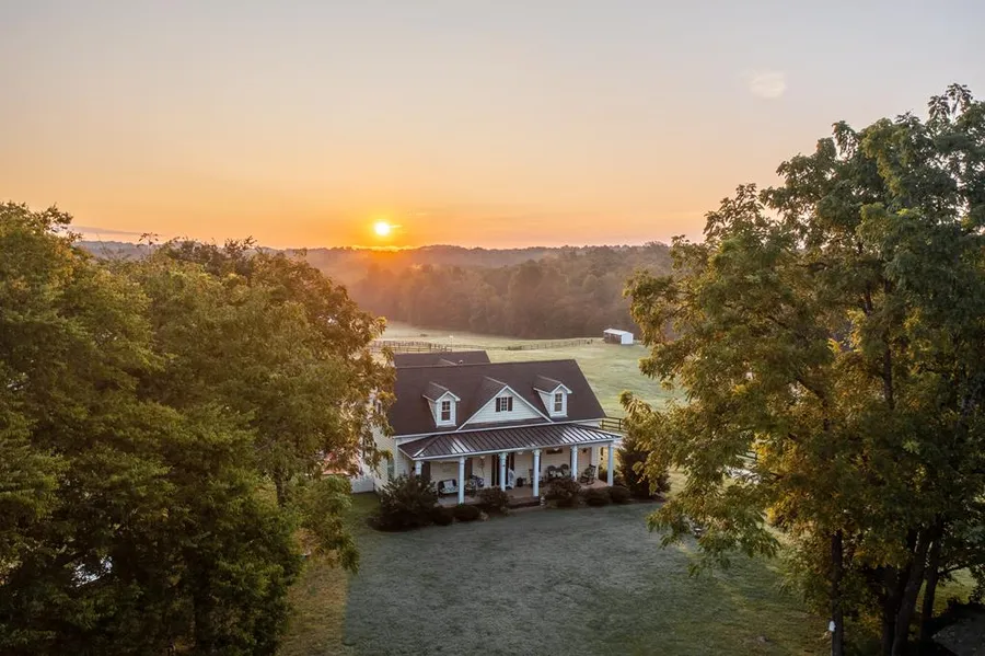 Welcome to Five Springs Equine, a stunning 125-acre farm with rolling fields, woods, and ponds, ideal for horse boarding, hunting, dog training, or farming. This classic William Poole-designed home offers 2,823 sq. ft. of well-planned, custom living space. Enjoy the front porch, rear deck, and patio, where you can spend mornings and evenings watching the mist rise off YOUR pond. The home features 3 bedrooms, 2.5 baths, a family room with 20+ ft. ceilings, a breakfast nook, a formal dining room, a laundry room, and a cook's delight kitchen. The property is nearly fully fenced, ready for horses, and includes a 36x60 stable with 6 stalls, a 60x30 barn with 5 stalls, a chicken shed, dog kennel, and several run-in sheds. The sunrises here will soothe your soul. Enjoy walking through the fields on cool fall mornings. Approximately 57 acres are fenced as open fields, with 10 acres planted with sorghum and millet to attract wildlife. The property also includes 5 automatic waterers for animals, about 66 acres of woods, including 30 acres of mature trees, and lowland areas around the creeks.