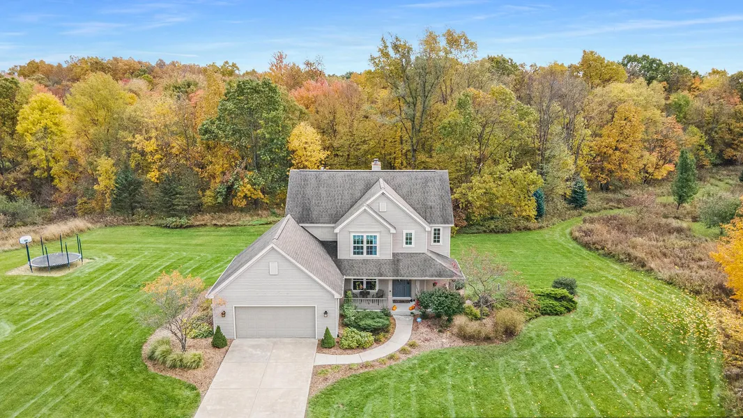 This custom built 2003 AVB country home is situated on 9-acres of mostly wooded rolling land with professional landscaping and fruit trees. The home is Located in the Gull Lake School District, 2 miles east of Hickory Corners. Featuring nearly 3,000 square feet of total finished living area, 2 car attached garage and a 36x32 outbuilding with 2 ten-foot overhead doors. The main floor has a spacious kitchen with eating area, built-in appliances, bath, see-through gas log fireplace between the kitchen and living room, and wood deck overlooking the backyard and firepit. The second story offers 3 bedrooms, 2 full baths and a laundry room. The master suite includes a jetted tub, dual vanity and walk-in closet. The basement has a 4th bedroom, 1 full bath, dry bar with granite countertops, refrigerator, living room & custom built-in Oak cabinets. Recent updates include furnace, hot water heater, pressure tank, dishwasher, casement windows above grade, carpet and engineered wood flooring on main level. The sellers have enjoyed the quiet neighborhood, successful deer and turkey hunting and the trails throughout the property.