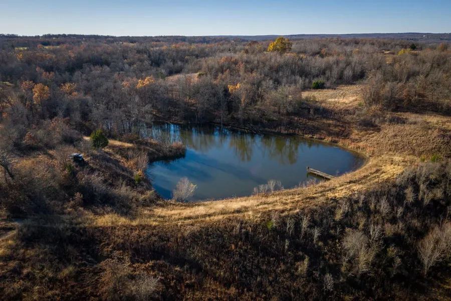 TERRAIN: The Walnut Ridge Ranch ranges in elevations from a high of 865’ +/- near the south-eastern corner to a low of 652’ +/- in the Hickory Creek channel for a total elevation change of 203' +/-. The land is marked by a scenic transition from an eastern ridge to the western valley throughout the property. Picturesque points, hilltops and oak covered hills provide views across the ranch and into Oklahoma. Deep drainages provide potential lake sites and make the property feel even larger than it already is. Hickory Creek is a key feature with long stretches of clear water and diverse riparian areas extending for miles.