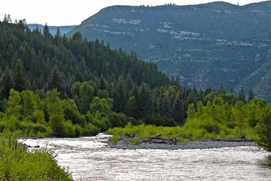 The property is located about 2 miles from Hwy 133 along County Road 12 towards Kebler pass and Crested Butte. A sturdy bridge crosses Coal Creek and massive wooden columns mark the entrance to the property. A long paved driveway and sizable lawn area lead to the secluded home compound. The 2,132 square foot home lies along the confluence of Anthracite and Coal Creeks.