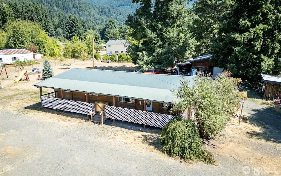 Welcome Home to a PRE-INSPECTED and ready for you Multi-generational opportunity. This is a 1.05 acre lot with options! The main home has 3 bedrooms, 2 bathrooms encased with beautiful cedar siding. Remodeled interior with cedar throughout the living and kitchen. Go out the back door you have a 24x36 shop outfitted with a new electrical panel. Next to the shop you have a detached, FULLY PERMITTED 1 bedroom, 1 bathoom w/ kitchenette. There's a RV pole with plenty of space to setup longterm. This property has 2 separate septics, a chicken coop, dog pen, wood storage with seasoned wood that conveys. After a long day, soak in the jetted jacuzzi with the lovely mountain as your backdrop. The lot is fully fenced with 2 entryways from the road.