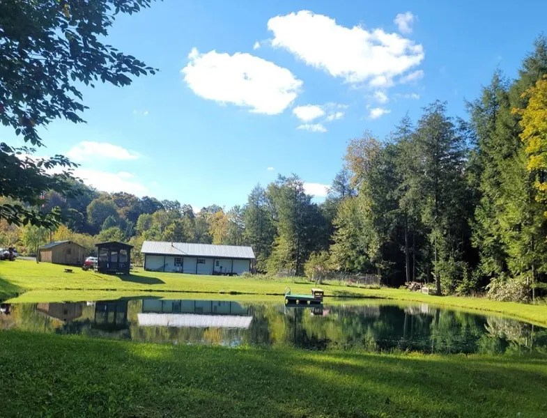 Check out this affordable home or ideal hunting camp with a beautiful pond for swimming and fishing, located only a short walk to Five Streams State Forest, providing an additional 6353 acres of outdoor recreation. Located on a quiet, country town maintained year-round road, the house is a single wide, approximately 1000+/- square feet with a steel roofed structure built around the home, providing additional storage space. There are 3 bedrooms, including two comfortable bedrooms and one larger Master bedroom and a full bathroom including a tub/shower unit. The house has a propane furnace heating system; however, it has been heated using a coal stove. Appliances include the refrigerator, stove, washer and dryer. The additional building structure built over the mobile home provides ample storage space for household items. For outdoor equipment or even small livestock, multiple sheds on the property can be used to house equipment, recreational toys or even small farm animals if desired. There is a really lovely pond, which is 14 feet deep and just over a third of an acre in size and features a dock as well as a ~16’ x 16’ screened-in gazebo overlooking the water. The pond is ideal for both fishing for bass as well as swimming. There are approximately 4 acres of woodlot, a mix of hardwoods and soft, primarily hemlock. There are two streams on the property, while the back borders 303’ feet of Strongs Brook. Five Streams State Forest is literally a 1700’ walk down the road and offers you another 6353 acres of outdoor recreation including hunting, hiking, mountain biking, snowmobiling, fishing and horseback riding. Amenities are available close by in either McDonough in 6 miles or Cincinnatus in miles. The property is located in the Cincinnatus School District. Additional shopping and restaurants are available in Whitney Point, 17 miles away and Binghamton is a half hour. The property is located only hours from NYC/George Washington Bridge.