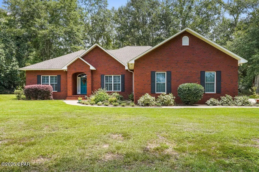 Welcome to this beautiful brick home perfectly situated just minutes from Walmart, I-10, and shopping while still offering the peace of a country setting on nearly an acre. This well-maintained 3-bedroom, 2.5-bath home features a spacious living area with a cozy gas fireplace, built-in speakers, and plantation shutters throughout much of the home. The kitchen offers an abundance of cabinetry with pullout drawers, a walk-in pantry, and a breakfast nook, making it ideal for everyday living. The split floor plan provides privacy, with a master suite that includes a walk-in closet, his and her closets, room-darkening shades, and a large bath complete with jetted tub, double vanities, and a walk-in shower. The additional bedrooms share a convenient Jack & Jill bathroom. Practical features include a half bath and laundry off the kitchen, an office area, and a two-car garage with extra storage and floored attic space. Enjoy outdoor living on the newly rescreened porch and expansive Trex deck, surrounded by shade trees and flowering plants. With updates such as tile flooring in the kitchen, baths, and laundry, a security system, and thoughtful details throughout, this home offers both comfort and convenience. A must-see property with the perfect blend of town convenience and country charm!