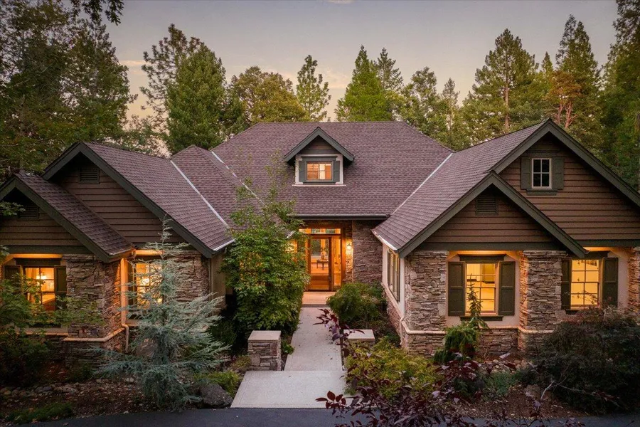 Sophisticated Craftsman! Extreme panoramic Sierra Snow Cap Views from this stunning home on 6.62 acres in the highly sought after Sierra Woodlands Sub. Enter through the atrium glass, double doors to an inviting foyer offering breathtaking views to the Sierra's. Slate flooring provides warmth and depth as you enter the spacious Chef's kitchen appointed with a Viking range, Subzero refrigerator, center island, custom wood cabinets, granite counters and a large walk in pantry. Built-in buffet and phone/writing desk area. Spectacular timber framed vaulted great room ceiling showcasing an impressive stone fireplace. Wood cased windows with views from every room. Large office, 2 guest bedrooms and spacious master suite w/triple crown molding and recessed lighting complete the main level. Master suite enjoys outside access to a private patio and spa offering magnificent sunrises over the Sierra's. Upstairs is a large family/game room and an additional guest bedroom and bath. Courtyard with patio, rose garden and fountain for leisurely moments throughout the day. Covered BBQ area with fireplace adjacent to the kitchen & great room. Minimal upkeep yard w/ natural landscaping Oversize 3-car garage, paved circular driveway. Solar, domestic well and NID treated water.